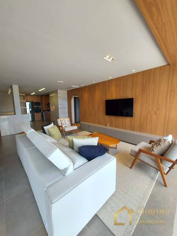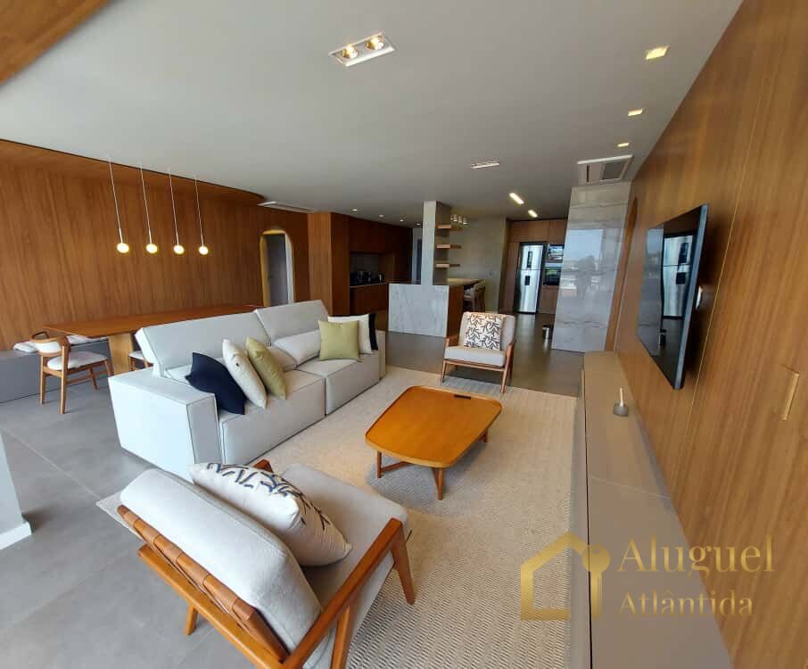 Apartamento com 04 suítes, lavabo, cozinha americana com churrasqueira, máquina lava e seca, living integrado, totalmente climatizado, internet wifi e box.