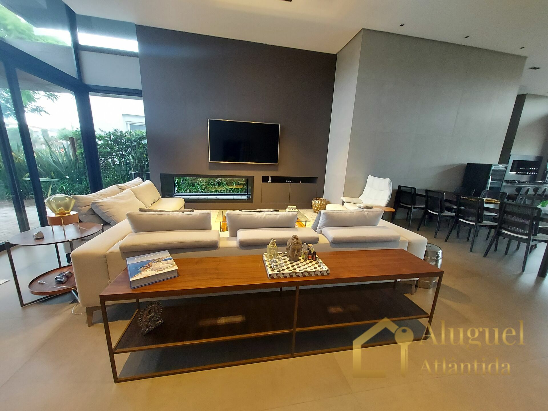 São 03 suítes, living amplo em 03 ambientes, totalmente climatizada, cozinha americana com churrasqueira, lavanderia, e piscina.
