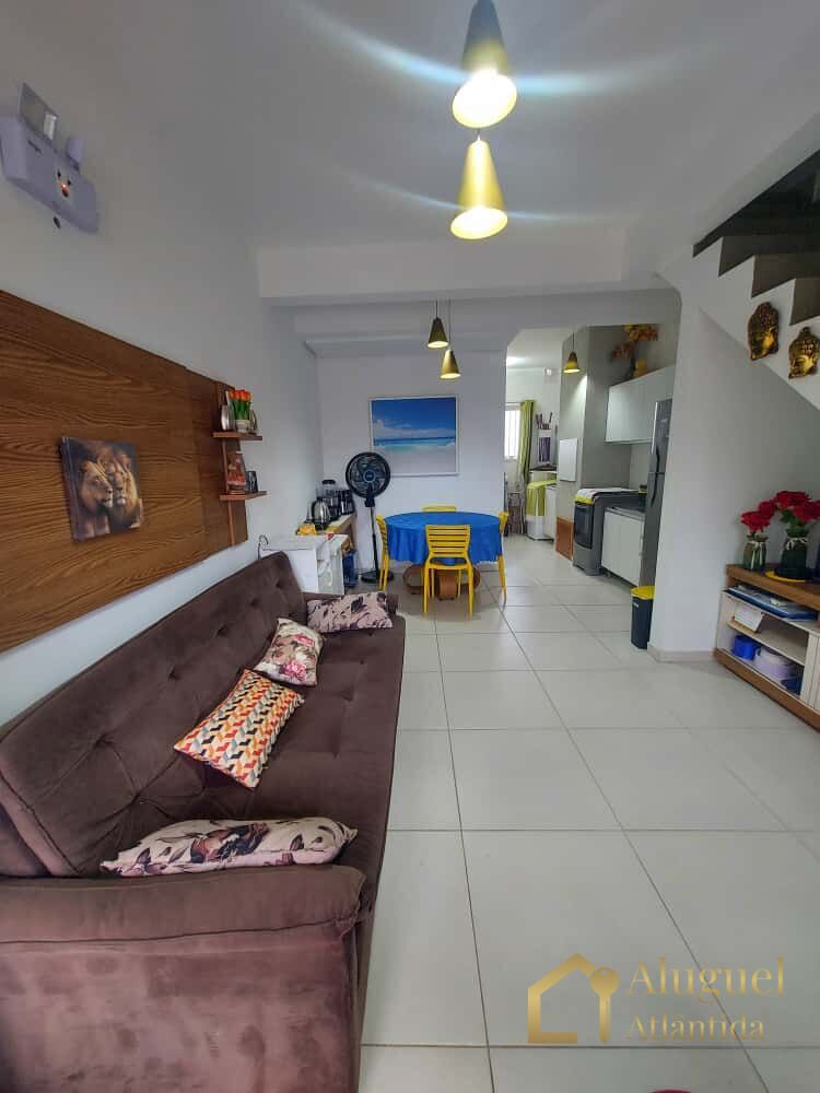 Sobrado à 2 quadras da praia, 02 dormitórios com ventilador de teto, banho social, livin integrado com cozinha americana e churrasqueira, lavabo, lavanderia, cercado, alarme monitorado, box para carro